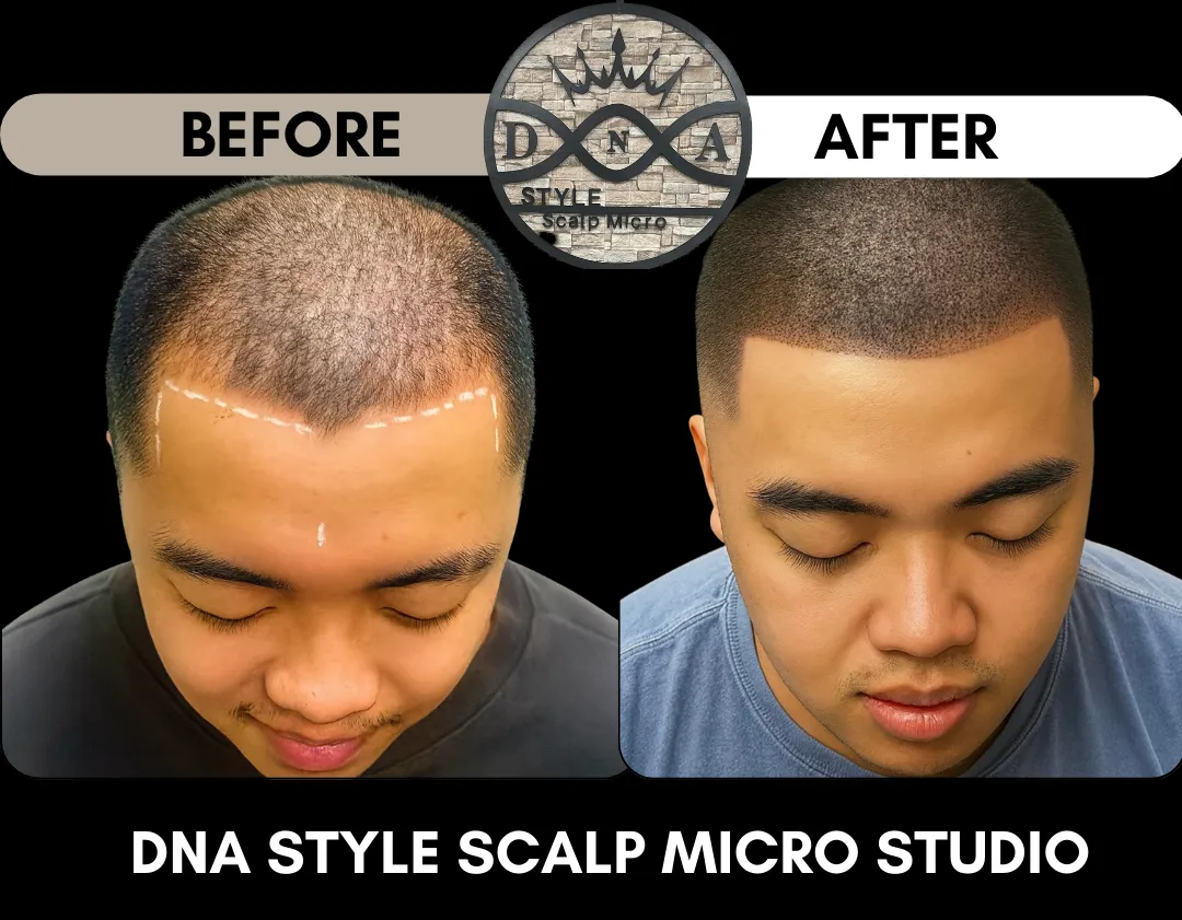 Yes. At DNA Style Scalp Micro, we use only premium, skin-safe pigments and adhere to the highest hygiene standards. Patch testing is also available on request.